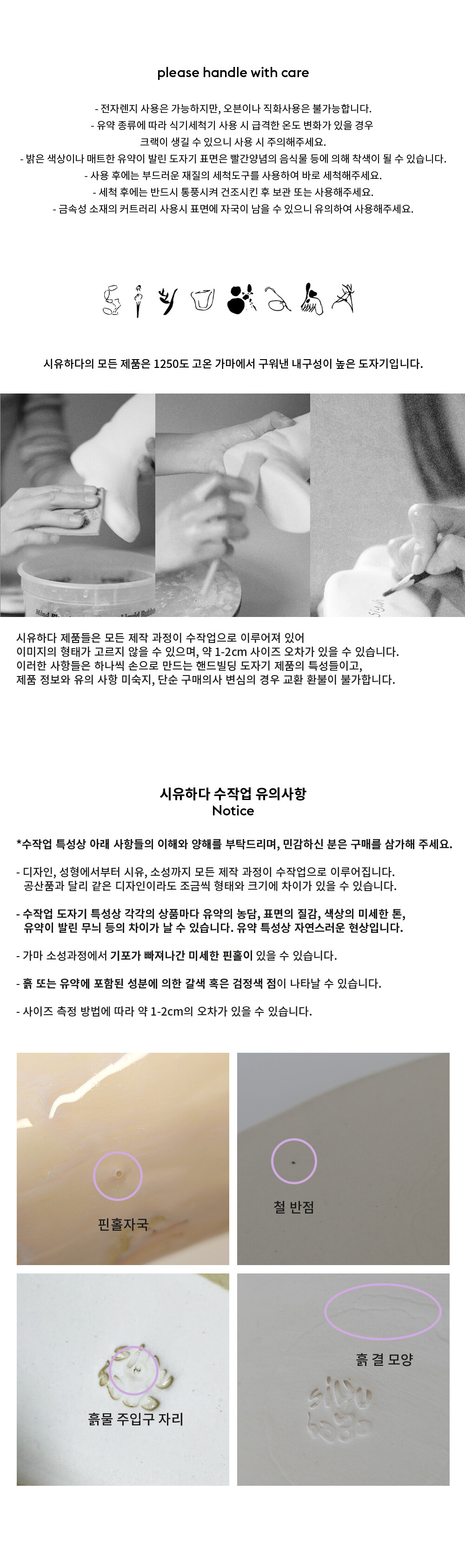 **핸드빌딩 도자기 특성상 사용유무의 여부가 판단 불가하므로 단순 구매의사 변심의 경우 교환 환불이 불가합니다.