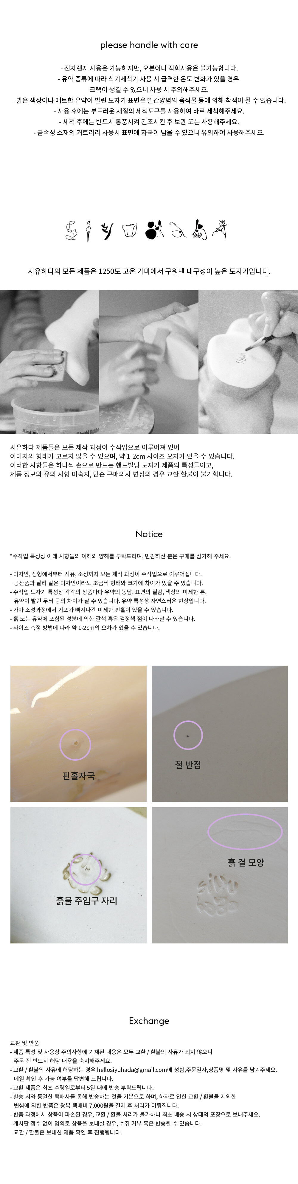 **핸드빌딩 도자기 특성상 사용유무의 여부가 판단 불가하므로 단순 구매의사 변심의 경우 교환 환불이 불가합니다.