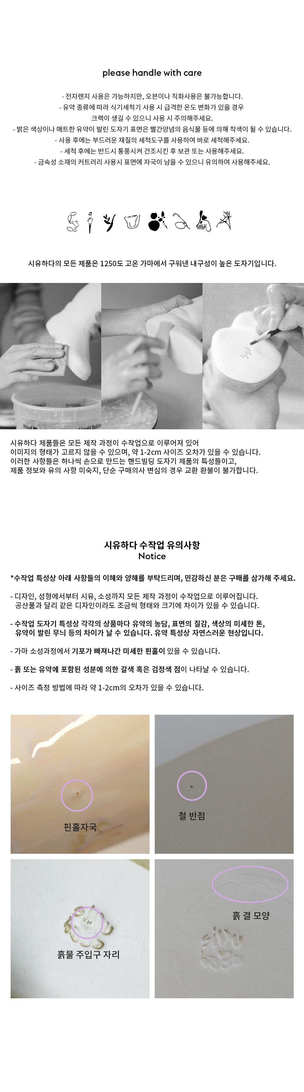 **핸드빌딩 도자기 특성상 사용유무의 여부가 판단 불가하므로 단순 구매의사 변심의 경우 교환 환불이 불가합니다.