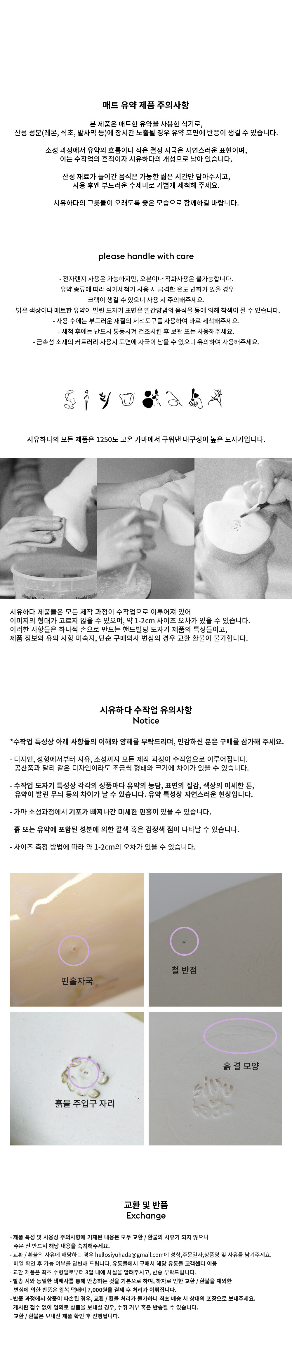 **핸드빌딩 도자기 특성상 사용유무의 여부가 판단 불가하므로 단순 구매의사 변심의 경우 교환 환불이 불가합니다.