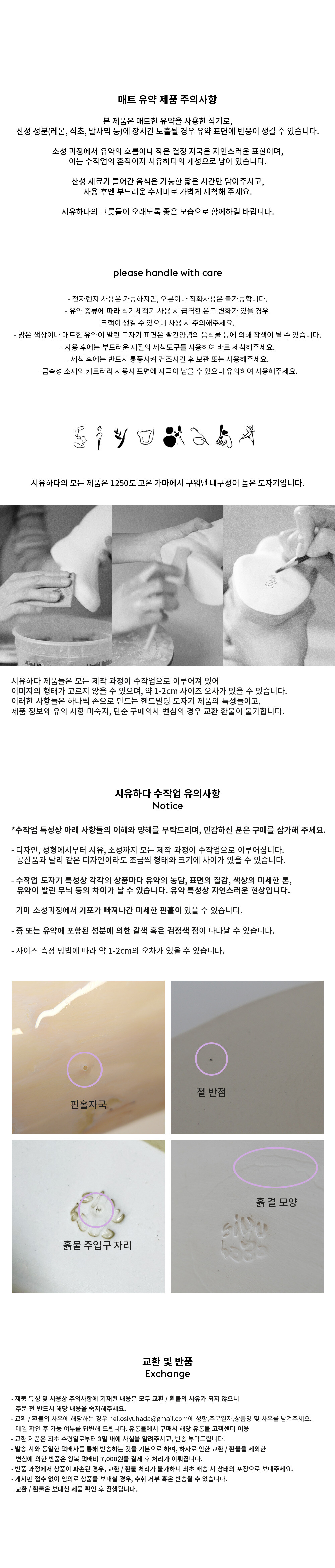 **핸드빌딩 도자기 특성상 사용유무의 여부가 판단 불가하므로 단순 구매의사 변심의 경우 교환 환불이 불가합니다.