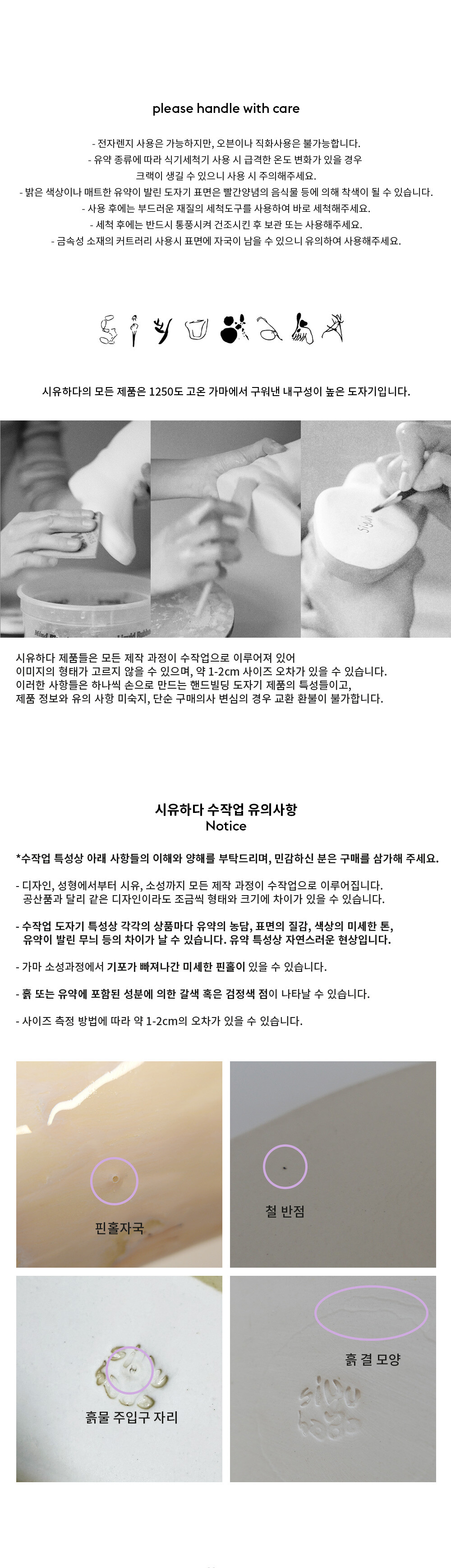 **핸드빌딩 도자기 특성상 사용유무의 여부가 판단 불가하므로 단순 구매의사 변심의 경우 교환 환불이 불가합니다.