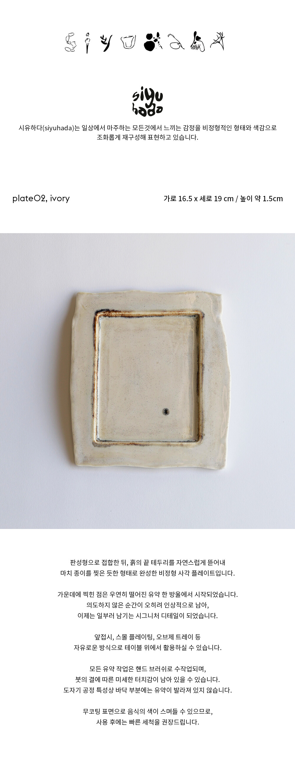 - 판으로 접합해 종이를 찢은듯한 쉐잎의 비정형적인 사각 플레이트 접시입니다.