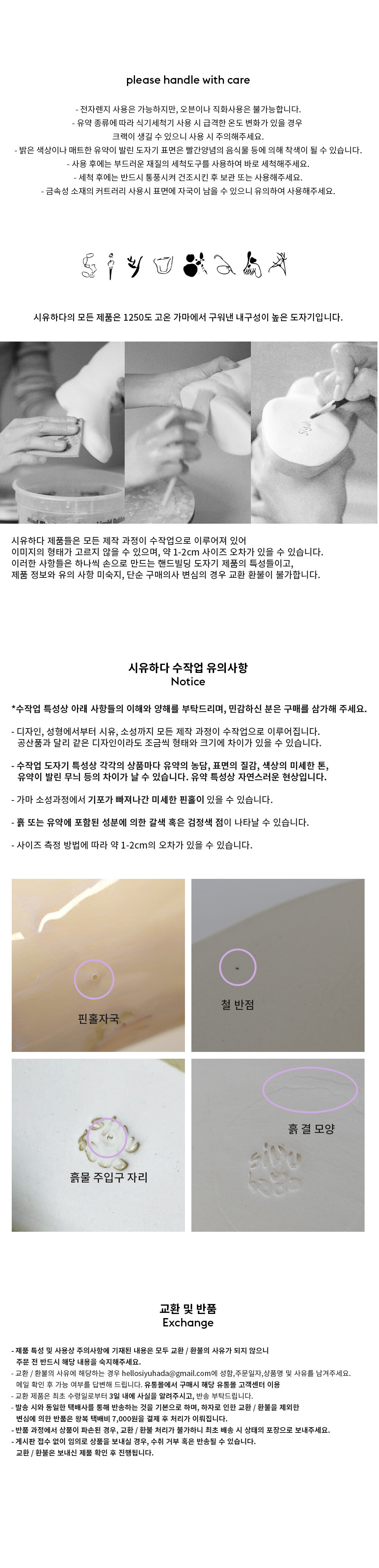 **핸드빌딩 도자기 특성상 사용유무의 여부가 판단 불가하므로 단순 구매의사 변심의 경우 교환 환불이 불가합니다.