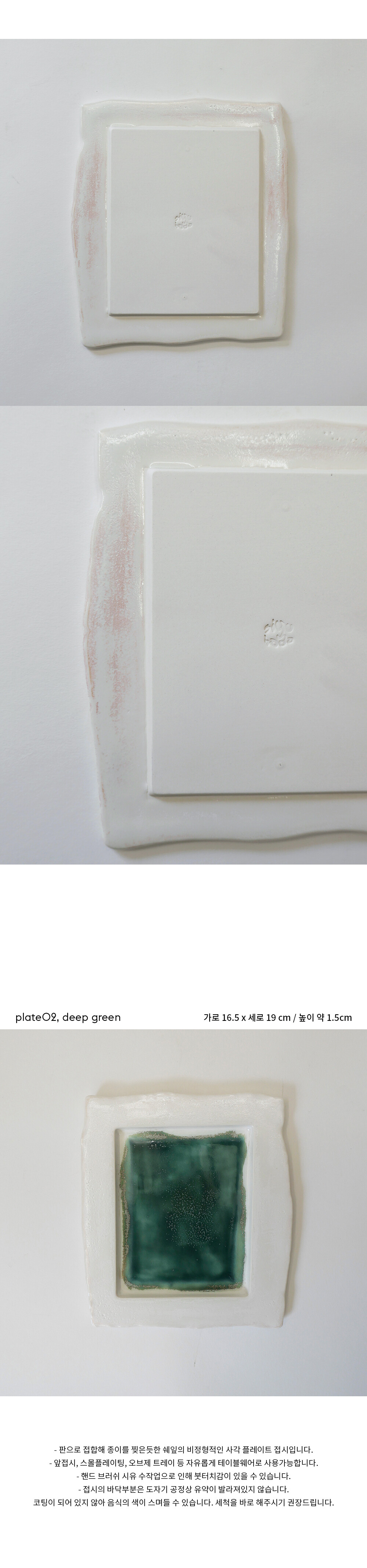 - 판으로 접합해 종이를 찢은듯한 쉐잎의 비정형적인 사각 플레이트 접시입니다. - 앞접시, 스몰플레이팅, 오브제 트레이 등 자유롭게 테이블웨어로 사용가능합니다. - 핸드 브러쉬 시유 수작업으로 인해 붓터치감이 있을 수 있습니다. - 접시의 바닥부분은 도자기 공정상 유약이 발라져있지 않습니다. 코팅이 되어 있지 않아 음식의 색이 스며들 수 있습니다. 세척을 바로 해주시기 권장드립니다.