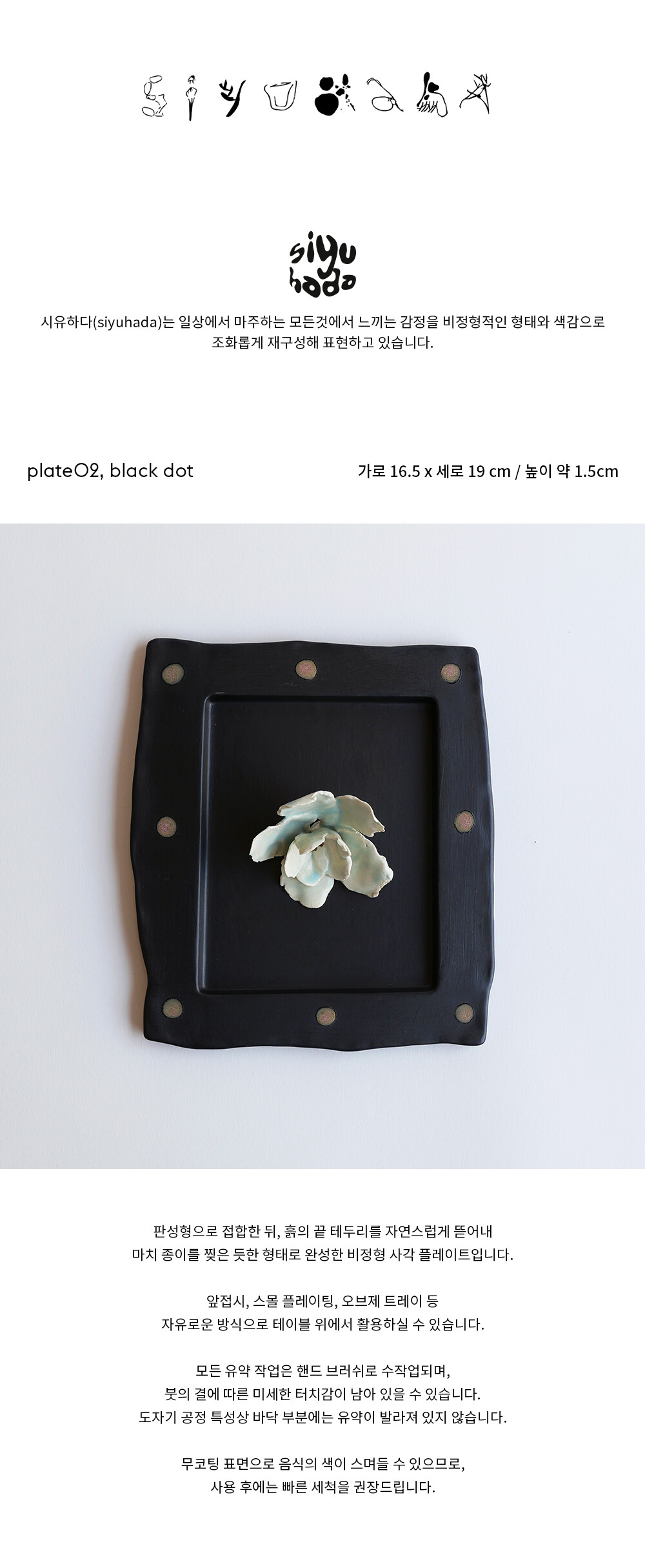 - 접시의 바닥부분은 도자기 공정상 유약이 발라져있지 않습니다.