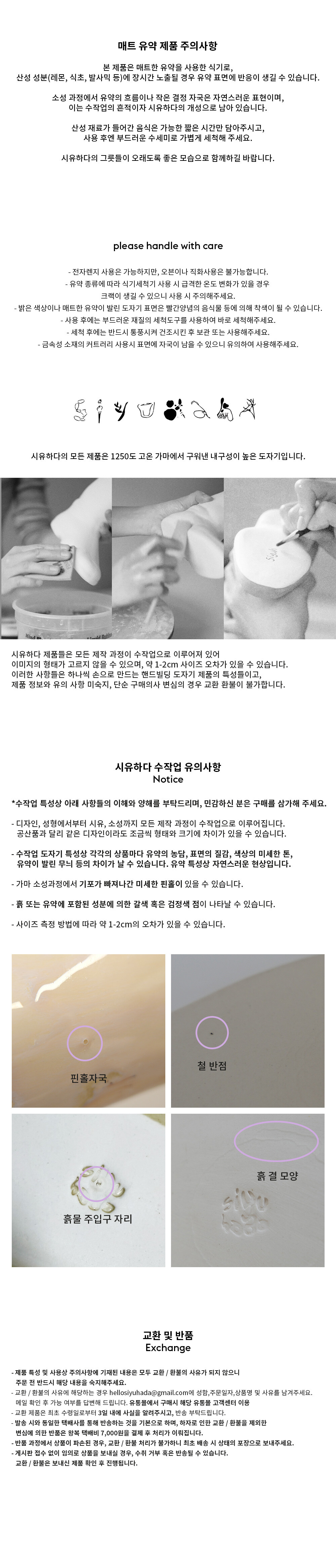 **핸드빌딩 도자기 특성상 사용유무의 여부가 판단 불가하므로 단순 구매의사 변심의 경우 교환 환불이 불가합니다.