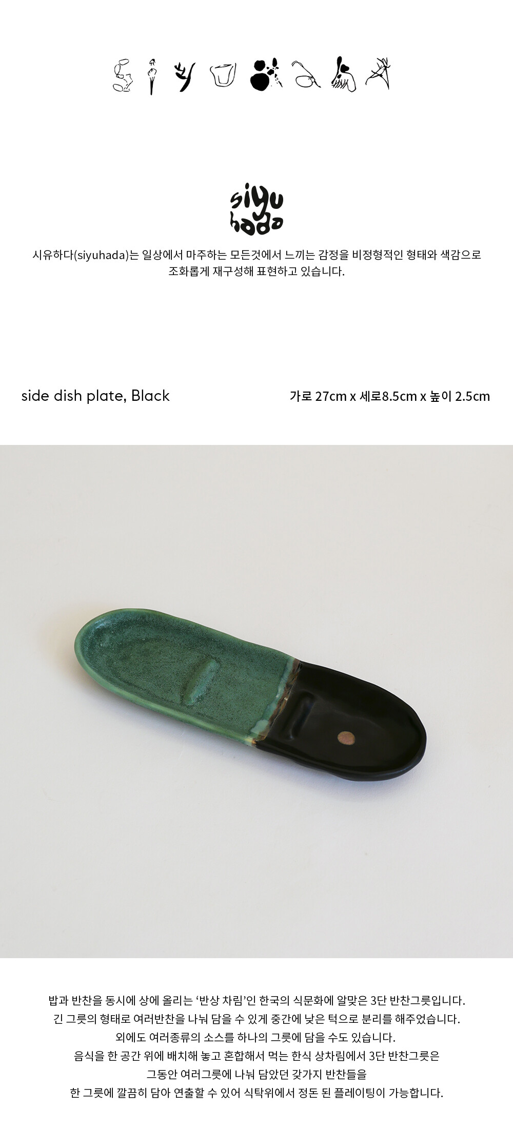 긴 그릇의 형태로 반찬을 나눠 담을 수 있게 중간에 낮은 턱으로 분리를 해주었습니다.
