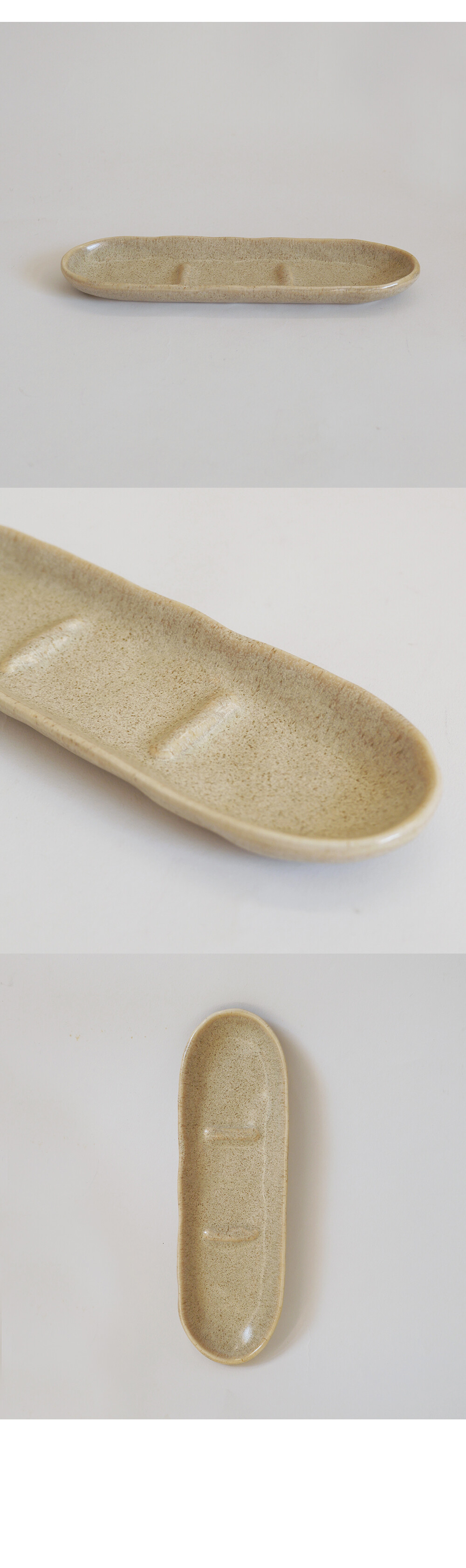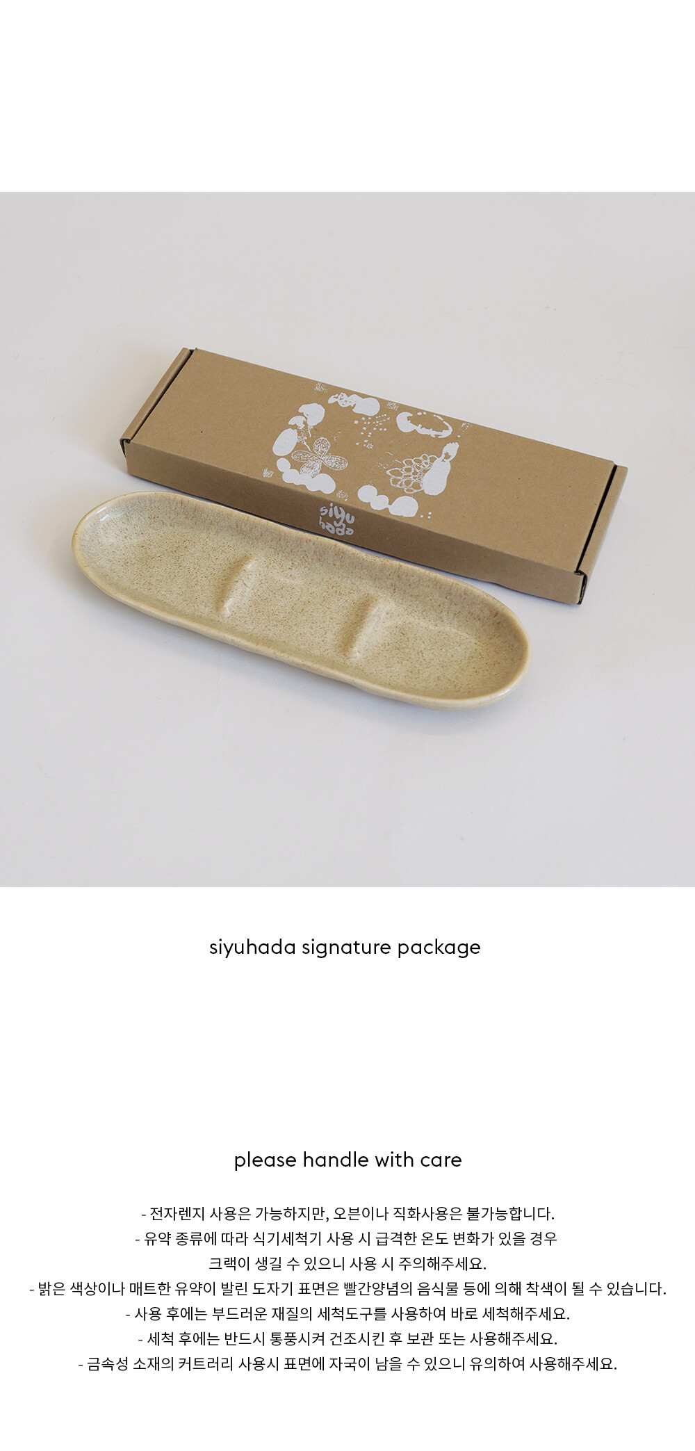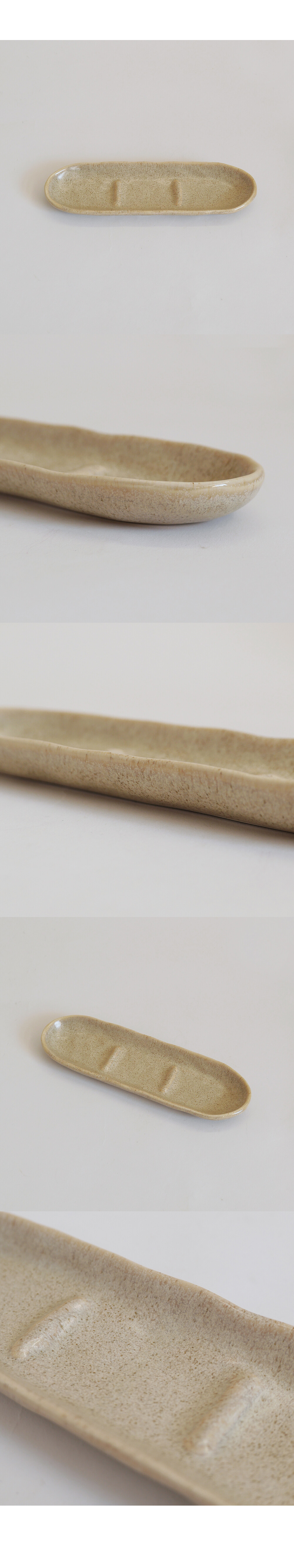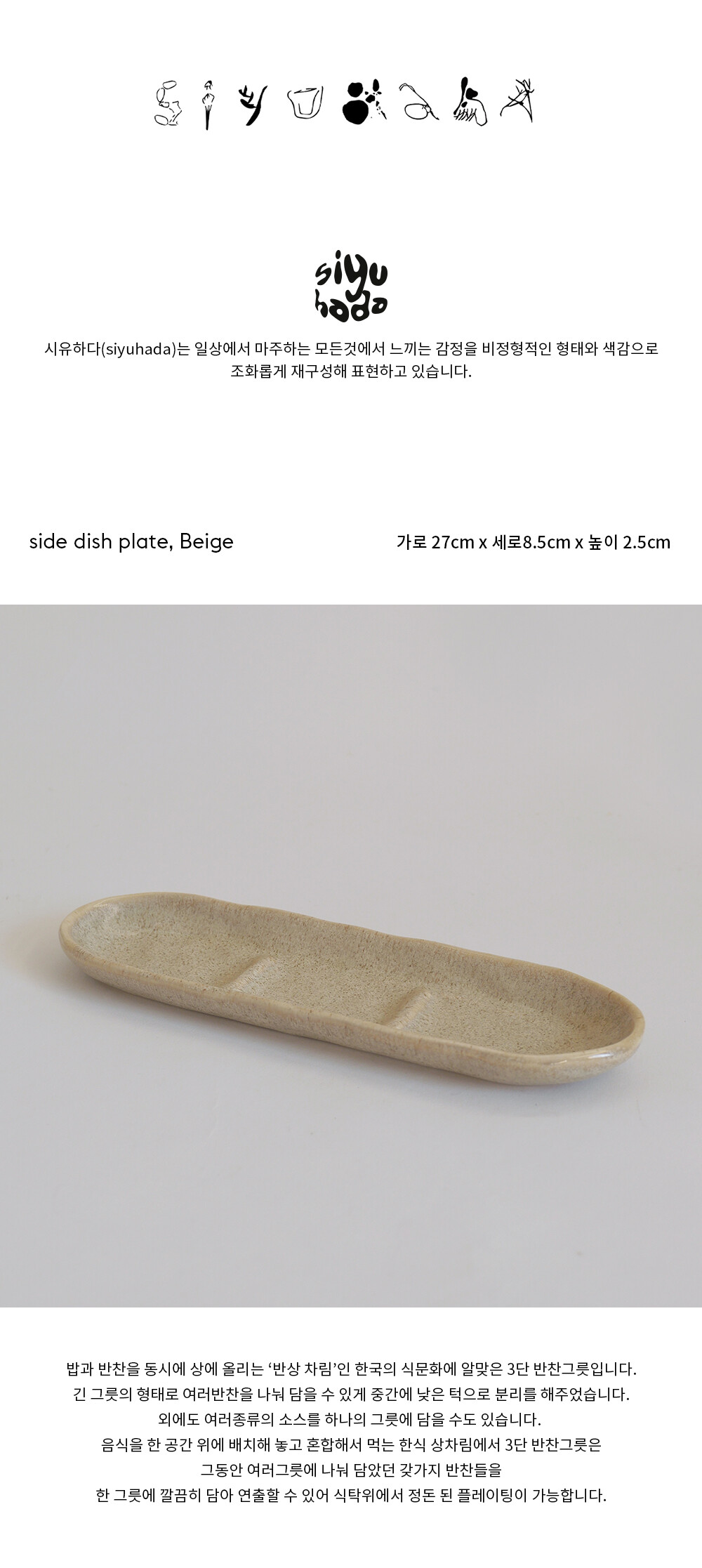 긴 그릇의 형태로 반찬을 나눠 담을 수 있게 중간에 낮은 턱으로 분리를 해주었습니다.