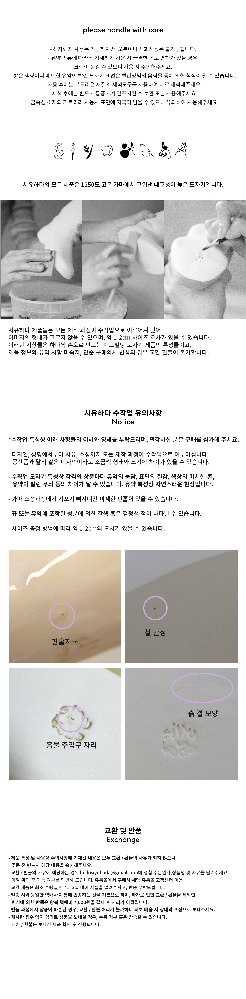 **핸드빌딩 도자기 특성상 사용유무의 여부가 판단 불가하므로 단순 구매의사 변심의 경우 교환 환불이 불가합니다.