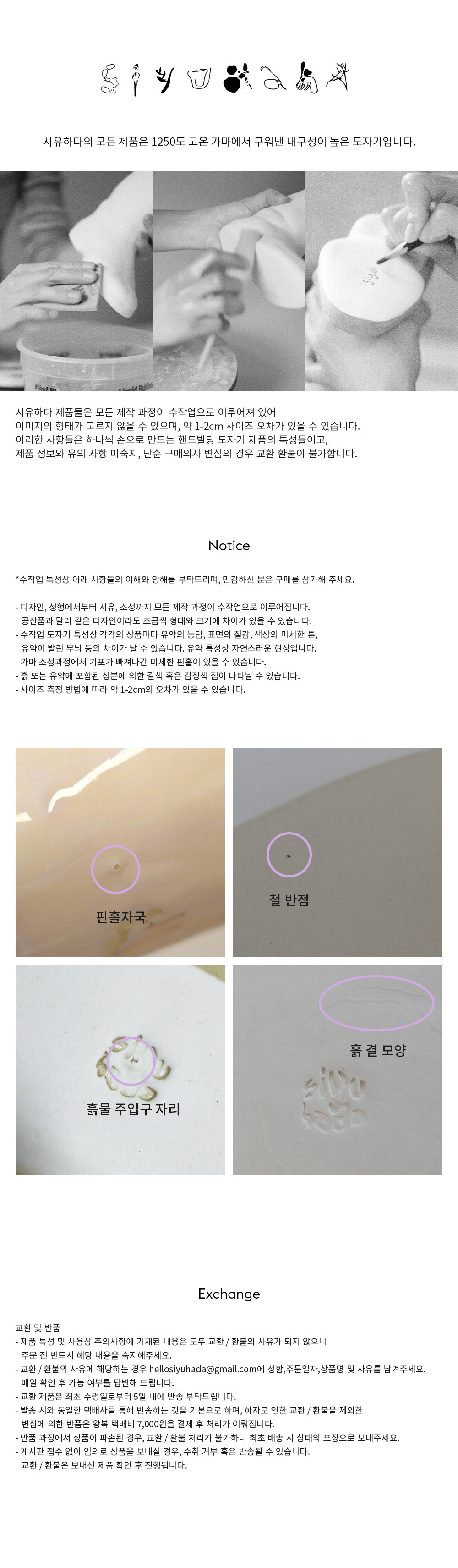**핸드빌딩 도자기 특성상 사용유무의 여부가 판단 불가하므로 단순 구매의사 변심의 경우 교환 환불이 불가합니다.