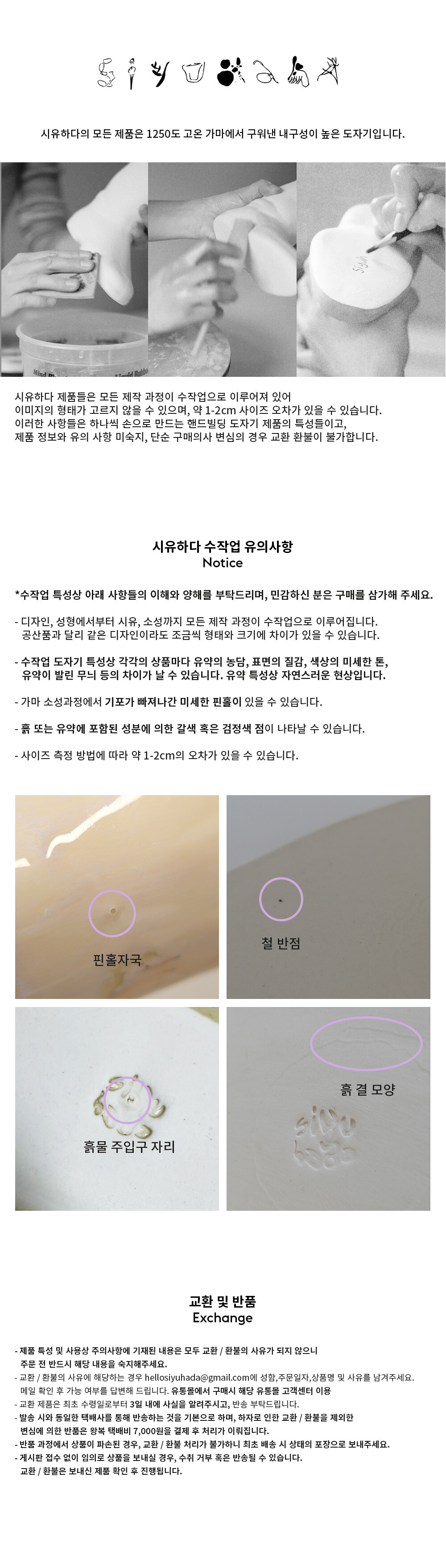 **핸드빌딩 도자기 특성상 사용유무의 여부가 판단 불가하므로 단순 구매의사 변심의 경우 교환 환불이 불가합니다.