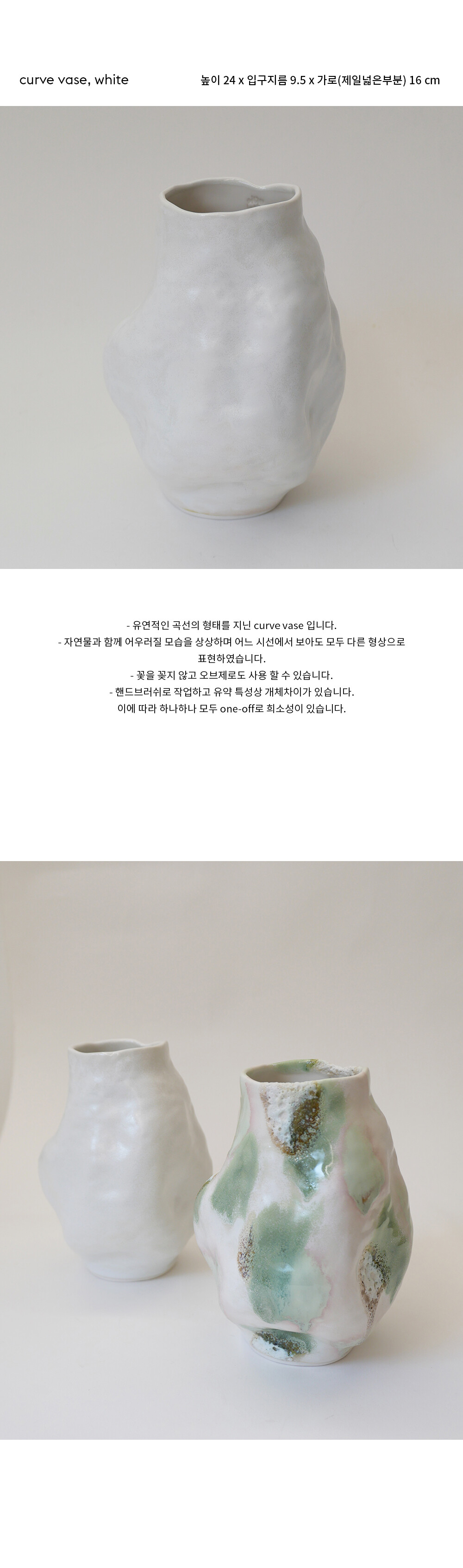 - 유연적인 곡선의 형태를 지닌 curve vase 입니다.