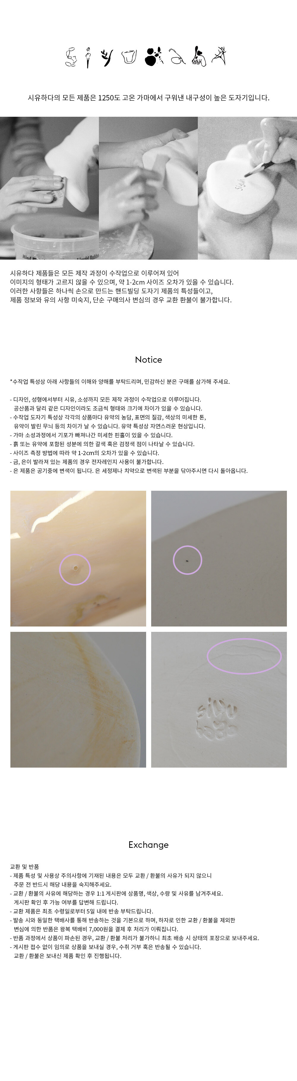 **핸드빌딩 도자기 특성상 사용유무의 여부가 판단 불가하므로 단순 구매의사 변심의 경우 교환 환불이 불가합니다.